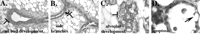 Recently, Smad4, a central mediator of TGF-β signaling, was deleted in mammary gland epithelium using a Cre/Lox recombination strategy (Li et al. 2003). Early mammary gland development was normal; however, lack of Smad4 induced gradual increases in proliferation, alveolar differentiation, and transdifferentiation of mammary epithelium into squamous cells. Mice later developed mammary abscesses and squamous cell carcinoma. The results suggest a role for TGF-β in regulating cell-fate decisions in the mammary gland. In addition, it has been documented that 7,12-dimethybenz(a)anthracene (DMBA) treatment in mice results in the formation of a heterogeneous group of tumors, the most common being those with squamous metaplasia or adenomyoepithelial character (Cardiff et al. 1988, Rehm 1990, Bottinger et al. 1997). When mice expressing a dominant-negative form of TβRII were treated with DMBA, alterations in TGF-β signaling influenced the pathology of the tumors formed (Bottinger et al. 1997, Crowley M, Frost A, Chen D-T, Baffi M, Nicola T & Serra R, unpublished work). In wild-type mice, DMBA promoted the formation of adenomyoepitheliomas. This type of tumor was not detected in glands with altered TGF-β signaling. Furthermore, staining for αSMA and K14 was reduced or absent in glandular structures from transgenic tumors relative to wild-type tumors (Crowley M, Frost A, Chen D-T, Baffi M, Nicola T & Serra R, unpublished work). The data suggest that TGF-β is also involved in the differentiation, maintenance, and/or transformation of myoepithelial cells.